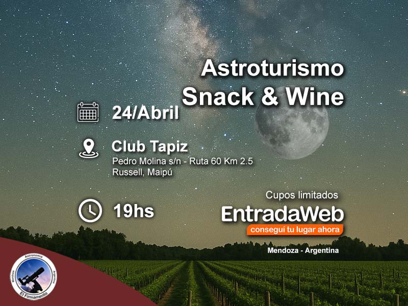 Al finalizar el recorrido, subiremos al primer piso del restaurante de la bodega para compartir un snack y una amena charla de astronomía, en la que los visitantes podrán formular sus preguntas e inquietudes.